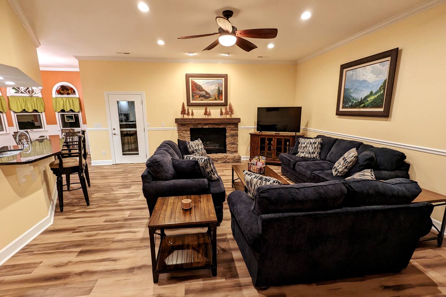 * Hot Tub * Gas Grill * Private Deck * Game Room including foosball, air hockey, dart board, some card games and some board games * Outdoor games including Cornhole, ladder ball, bocce ball, yard dice and large jenga * Gas Fireplace & 50" TV in Living Room * Fully Equipped Kitchen including small appliances, drip coffee maker and Keurig, pots pans, dishes, cooking utensils, leftover containers, crockpot, blender, and mixer * Washer/Dryer * Jacuzzi Tub * Built-in Desk * No Stairs for Home or Deck * WiFi * No 4WD Needed Sleeps 12 * Primary Bedroom: Main Level w/King Bed, TV, Ensuite Bathroom w/Separate Shower and Jacuzzi Tub * 2nd Bedroom: Main Level w/King, TV, Window Seat * 3rd Bedroom: Main Level w/Queen, TV, Built-In Desk * 4th Bedroom: Main Level w/Full over Full Bunk and (2) Twin over Twin Bunks At Boardly Haven, we take your guest experience seriously. There is a high standard of cleaning including emptying, cleaning, and refilling the hot tub after every guest stay.