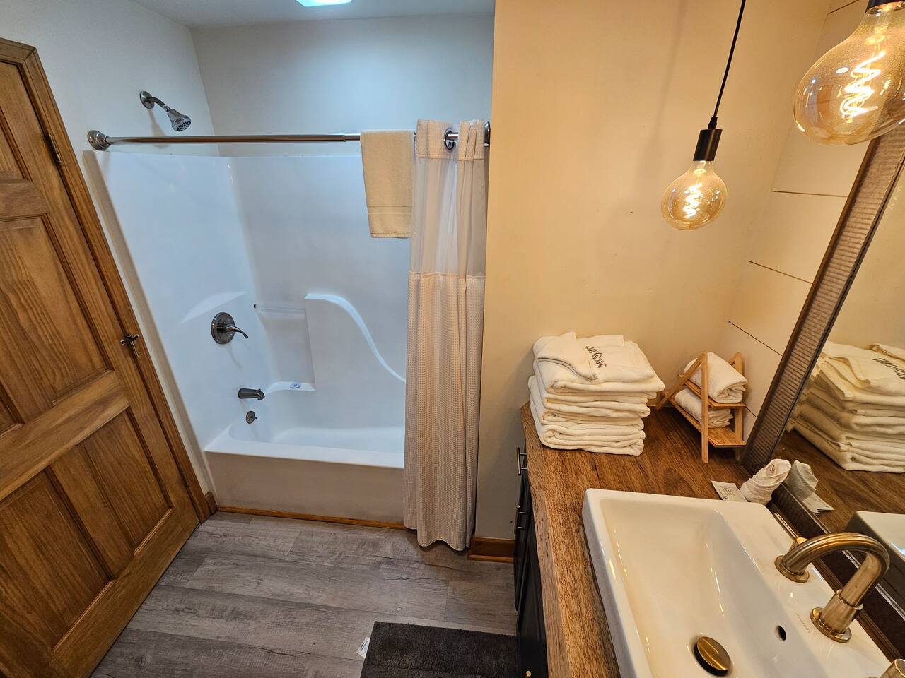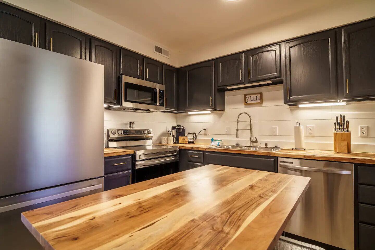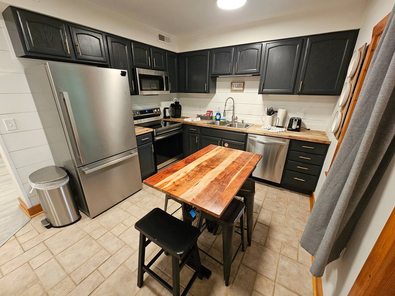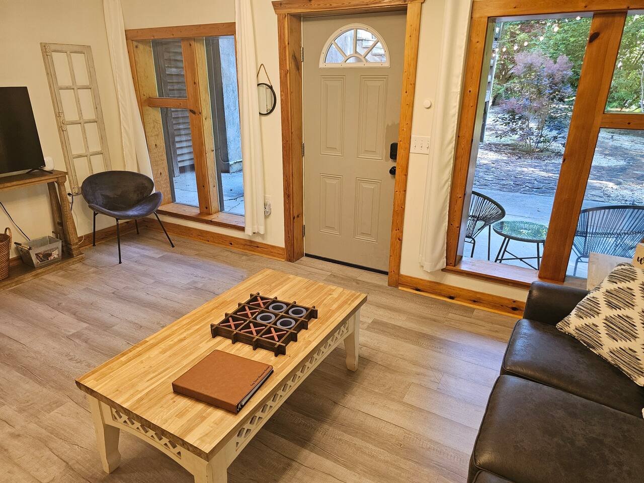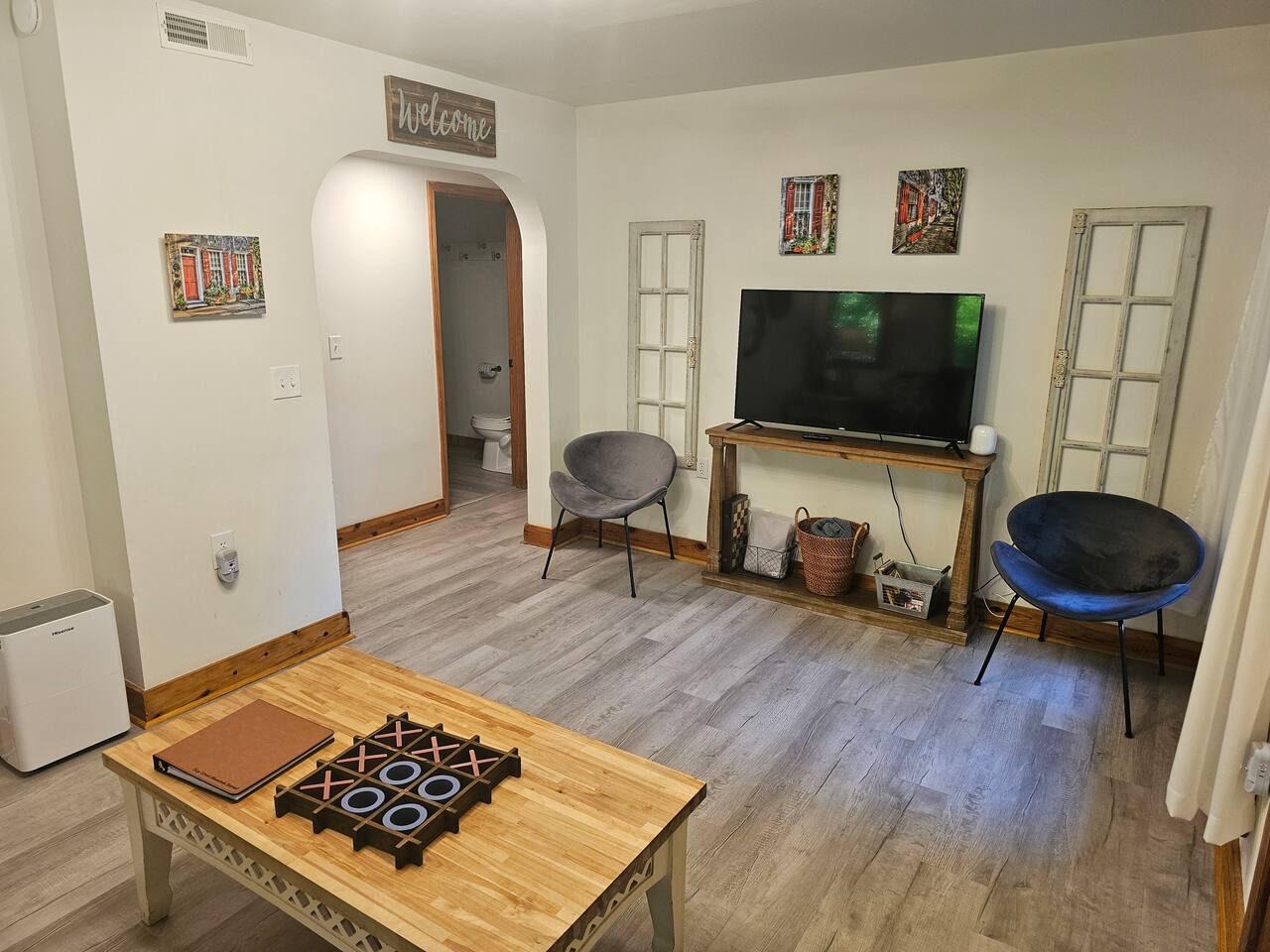 Come find respite and relief at our Easy Street Mountain Retreat! Our 2 bedroom, 1 bath downstairs duplex apartment is beautifully decorated and is the perfect spot for your family to come get away from the hustle and bustle of everyday life! This lovely, newly remodeled duplex includes completely private entrances for each apartment, so all areas mentioned will be just for you. The space accommodates 4 guests and is only 3 miles from the Parkway, your local highway access to shopping and dining in the Pigeon Forge/Sevierville area. Upon entering the apartment, you’ll find a cozy little living room with a smart TV, ready for you to log in to your own personal favorite streaming subscriptions. Just in case you don’t want to miss your favorite show while you’re away from home! (No cable is provided.) High speed wifi is available throughout the entire space, as well. In the kitchen are beautiful butcher block countertops and stainless steel finishes. The kitchen is well-equipped with all the necessary amenities to cook all your meals, from the simplest breakfast snacks, to more elaborate dinners. Stainless steel appliances include a refrigerator, stove/oven, dishwasher and microwave. You'll also find all the cookware, utensils, flatware and dishes you need to prepare and enjoy a meal, start to finish. In addition to the major appliances, we’ve included the all-important kitchen basics for your convenience; toaster, K cup coffee maker and a tea kettle. The in-kitchen dining area with a counter height butcher block table is a welcoming place to enjoy your breakfast and morning coffee as the sun light comes up. Each of our bedrooms boast comfortable queen-sized beds with top quality mattresses, pillows and linens to ensure you get a good night’s rest during your stay. We’ve got you “covered”! The bathroom is stocked with bath linens. After a long, busy day out in the Great Smokies, we’ll have all you need to get cleaned up for a chill, laid back evening in to rest up for the next day. We also offer a full-sized, stackable washer and dryer for your use during your stay...because who doesn’t like to go home with a suitcase full of clean clothes? Lastly, our covered patio also makes a wonderful place to begin and end your day with your loved ones during the warmer seasons. Our hot tub beckons you to hop in and ease those aching muscles before going to bed. The hot tub is not shared with other guests, but is solely for your use. There is a charcoal grill located off the patio. (Charcoal is not provided.) Our chairs are waiting for you to come sit a spell and breathe in the fresh air! We can’t wait to see you! At Easy Street Mountain Retreat, we take your guest experience seriously. There is a high standard of cleaning including emptying, cleaning, and refilling the hot tub after every guest stay. Driving distance to points of interest: The Goat Mountain Coaster 1.1 miles Smoky Mountain Alpine Coaster 1.5 miles Wears Valley Zipline Adventures 2.7 miles The Track - go carts and amusement 3.1 miles The Local Goat restaurant 3.9 miles Big Daddy's Pizza 3.9 miles Titanic Museum 4.1 miles Adventure Park Ziplines 4.9 miles Tanger Outlets 5.2 miles Dolly Parton's Stampede 5.3 miles Rocky Top Mountain Coaster 5.5 miles Dollywood: 7.5 miles Anakeesta 11.4 miles Ripley's Aquarium 11.4 Ripley's Mountain Coaster 11.1 miles Soaky Mountian Water Park 12.2 miles Gatlinburg 12.7 miles Ober 14.3 miles Cades Cove 23 miles Big Bear Whitewater rafting 37.3 mile