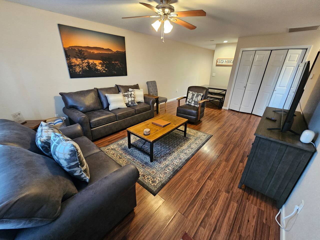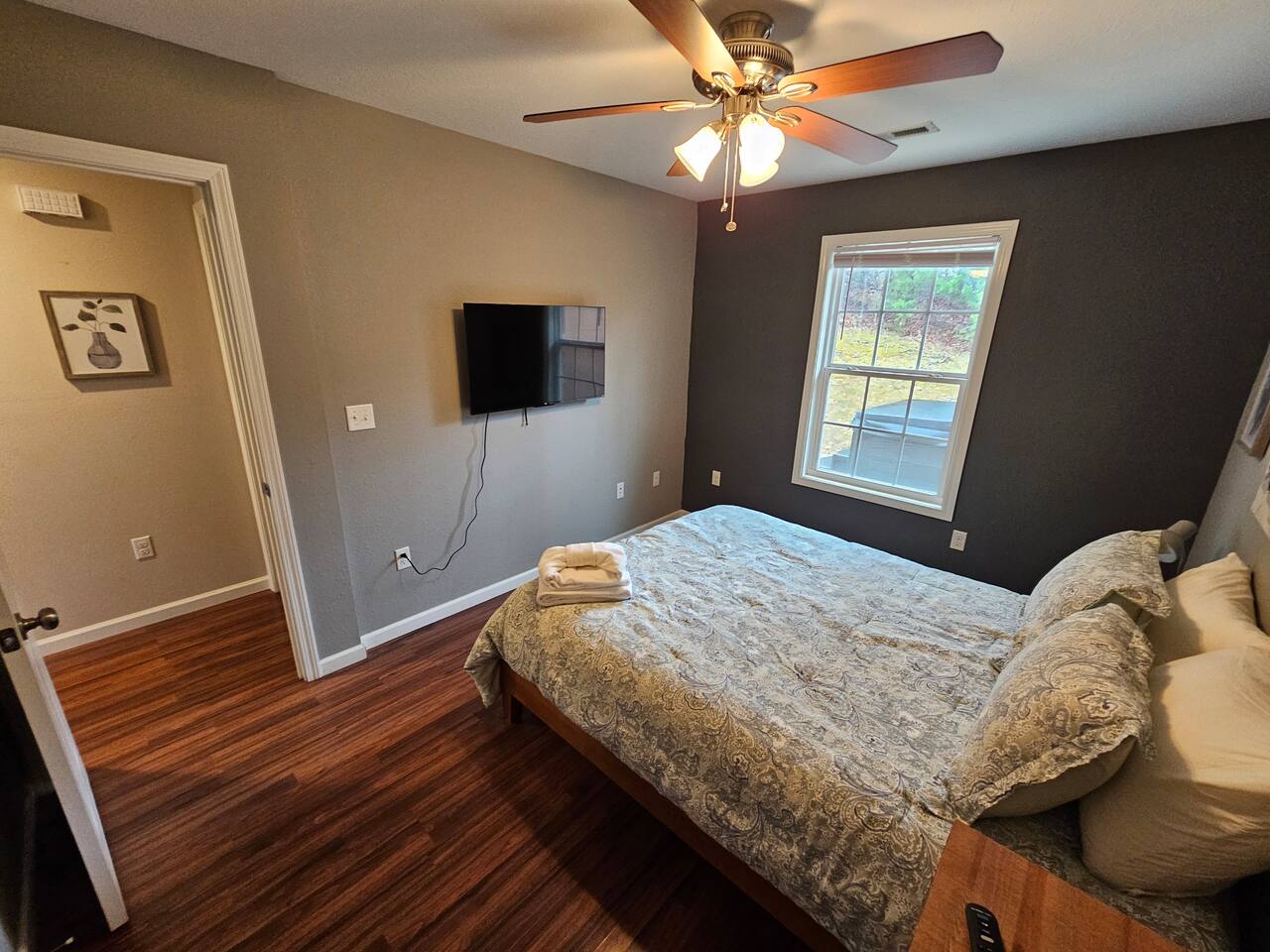 The mountains are calling you to discover the Mountain View Escape! Our 2 bedroom, 1 bath duplex apartment is stylishly decorated and is the perfect spot for your family to come get away from it all! This beautiful, newly built duplex includes completely private entrances for each apartment, so all areas mentioned will be just for you. The space accommodates 4 guests and is less than a mile from the Parkway, your local highway access to shopping and dining in the Pigeon Forge/Sevierville area. Upon entering the apartment, you’ll find a cozy, open floor plan with plenty of natural light! The living room smart TV is ready for you to log in to your own personal favorite streaming subscriptions so you don’t miss your favorite show while you’re away from home! (No cable is provided) High speed wifi is available throughout the entire space as well. The kitchen is well-equipped with all the necessary amenities to cook all your meals, from the simplest breakfast snacks, to more elaborate dinners. Appliances include a refrigerator, stove/oven, dishwasher and microwave. You'll also find all the cookware, utensils, flatware and dishes you need to prepare and enjoy a meal, start to finish. In addition to the major appliances, we’ve included the all-important kitchen basics for your convenience; toaster, coffee pot, K cup coffee maker and a tea kettle. Just off the kitchen is a quaint little dining area; a welcoming place to enjoy your breakfast and morning coffee as the sun light wakes up the room. Each of our bedrooms boast comfortable queen-sized beds with top quality mattresses, pillows and linens to ensure you get a good night’s rest during your stay. We’ve got you “covered”! The main bathroom is stocked with bath linens. After a long, busy day out in the Great Smokies, we’ll have all you need to get cleaned up for a chill, laid back evening in. We also offer a stackable washer and dryer for your use during your stay...because who doesn’t like to go home with a suitcase full of clean clothes? Lastly, our outdoor patio makes a wonderful place to begin and end your day with your loved ones during the warmer seasons. There is a charcoal grill easily accessible from the kitchen (charcoal is not provided). The hot tub beckons you to hop in and ease those aching muscles before going to bed. The hot tub is not shared with other guests, but is solely for your use. An outdoor eating area is perfect for enjoying a meal with friends and family. At Mountain View Escape, we take your guest experience seriously. There is a high standard of cleaning including emptying, cleaning, and refilling the hot tub after every guest stay. Driving distance to points of interest: Mama's Farmhouse .7 miles Big Daddy's Pizza 1 mile The Island 1.2 miles The Track - go carts and amusement 1.5 miles Mellow Mushroom 1.7 miles Dolly Parton's Stampede 2.4 miles The Local Goat restaurant 2.4 miles Titanic Museum 2.6 miles Smoky Mountain Alpine Coaster 2.7 miles Rocky Top Mountain Coaster 2.7 miles The Goat Mountain Coaster 3.6 miles Tanger Outlets 3.6 miles Adventure Park Ziplines 3.8 miles Dollywood: 4.1 miles Wears Valley Zipline Adventures 5.2 miles Wild Bear Tubing 7.4 miles Ripley's Mountain Coaster 8.3 miles Anakeesta 8.6 miles Gatlinburg 8.6 miles Ripley's Aquarium 8.7 miles Soaky Mountian Water Park 8.7 miles Sugarlands Visitor Center (National Park) 11.8 miles Ober Mountain 12 miles Cades Cove 30.8 miles
